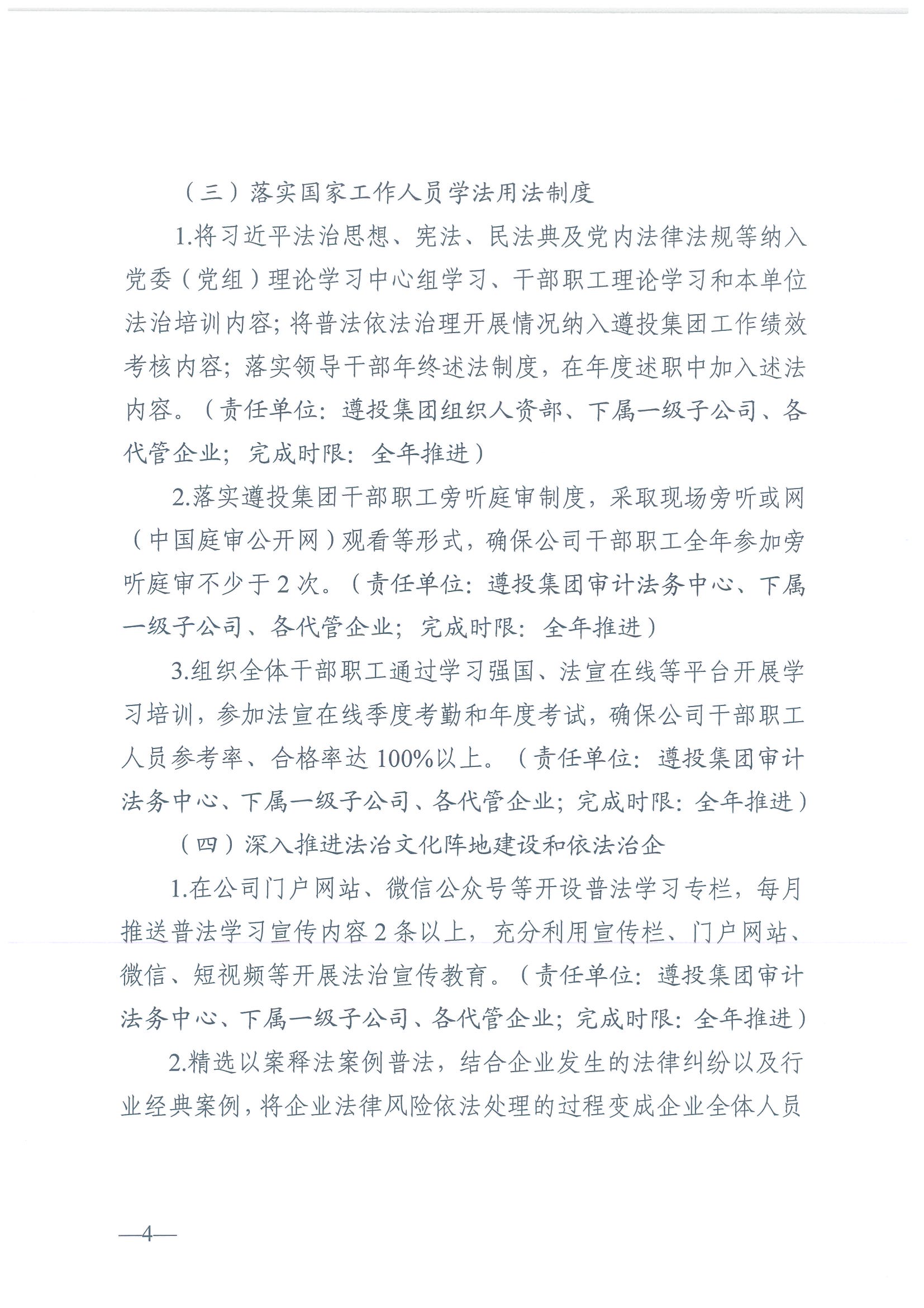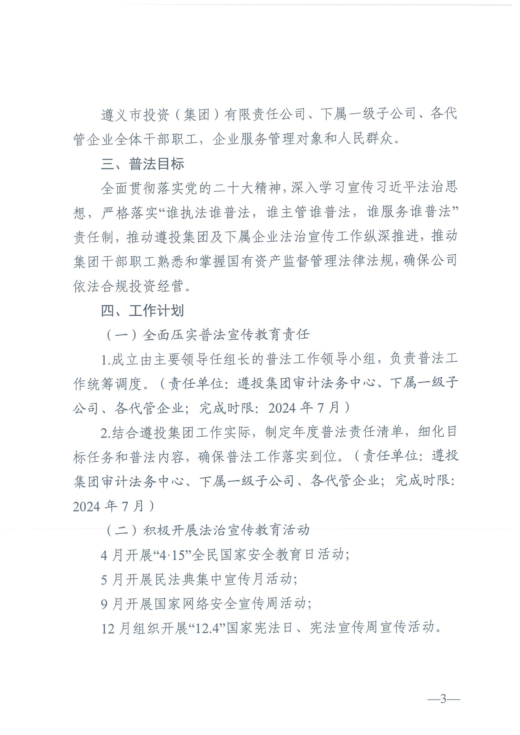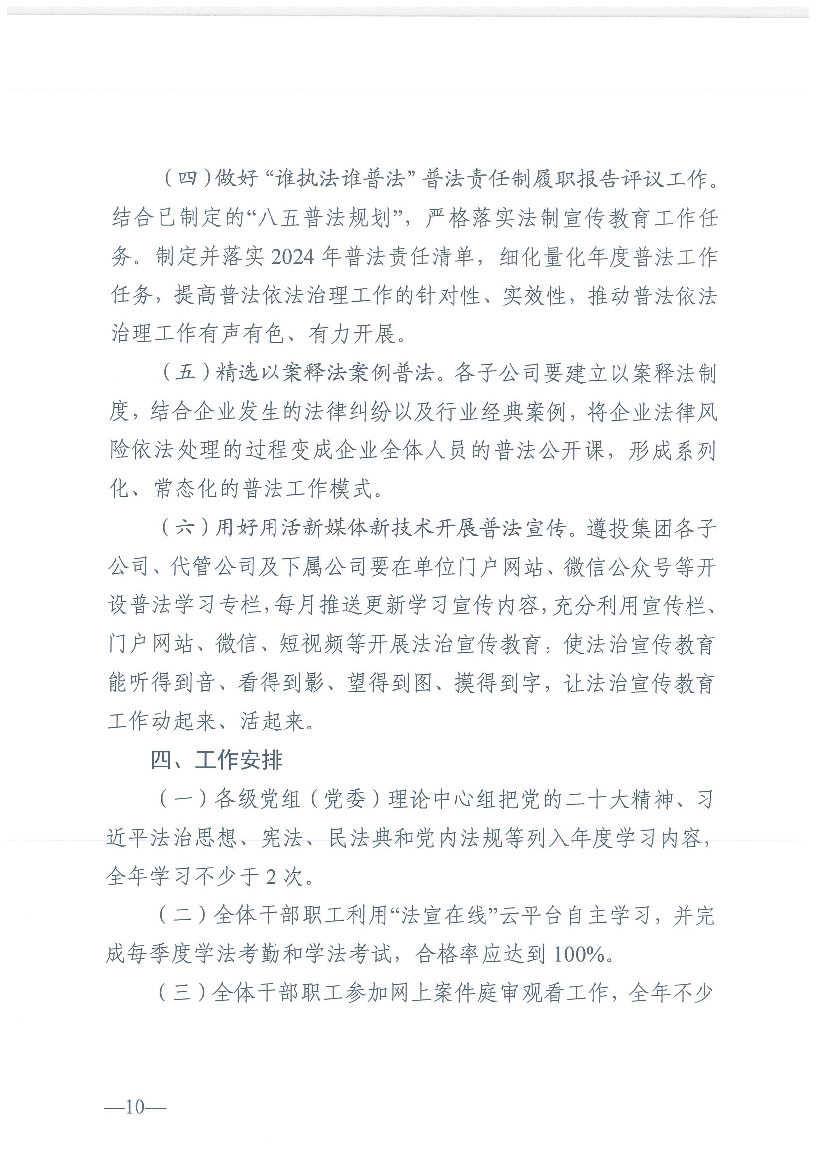 遵投發(fā)〔2024〕42號?關(guān)于印發(fā)《2024年度普法責任清單》《2024年普法依法治理工作方案》的通知