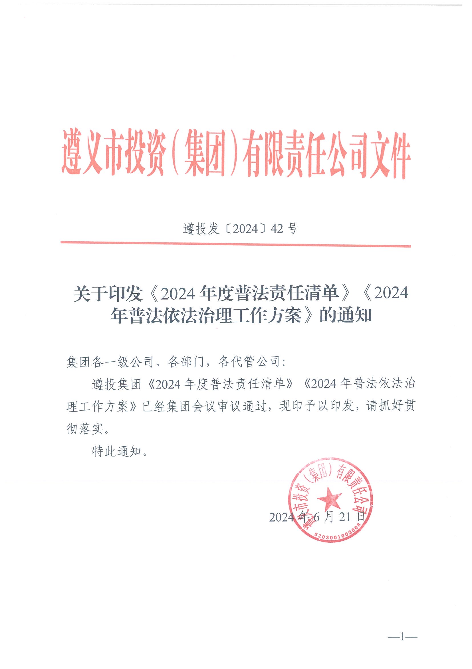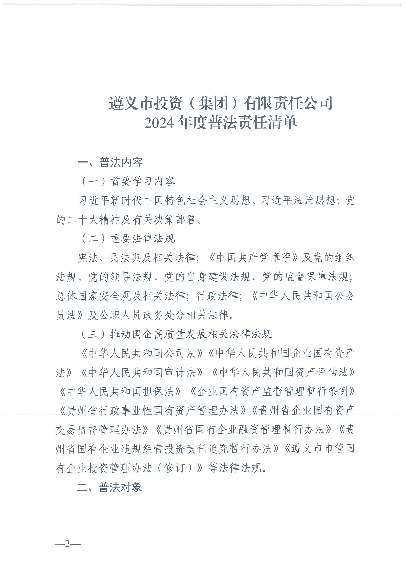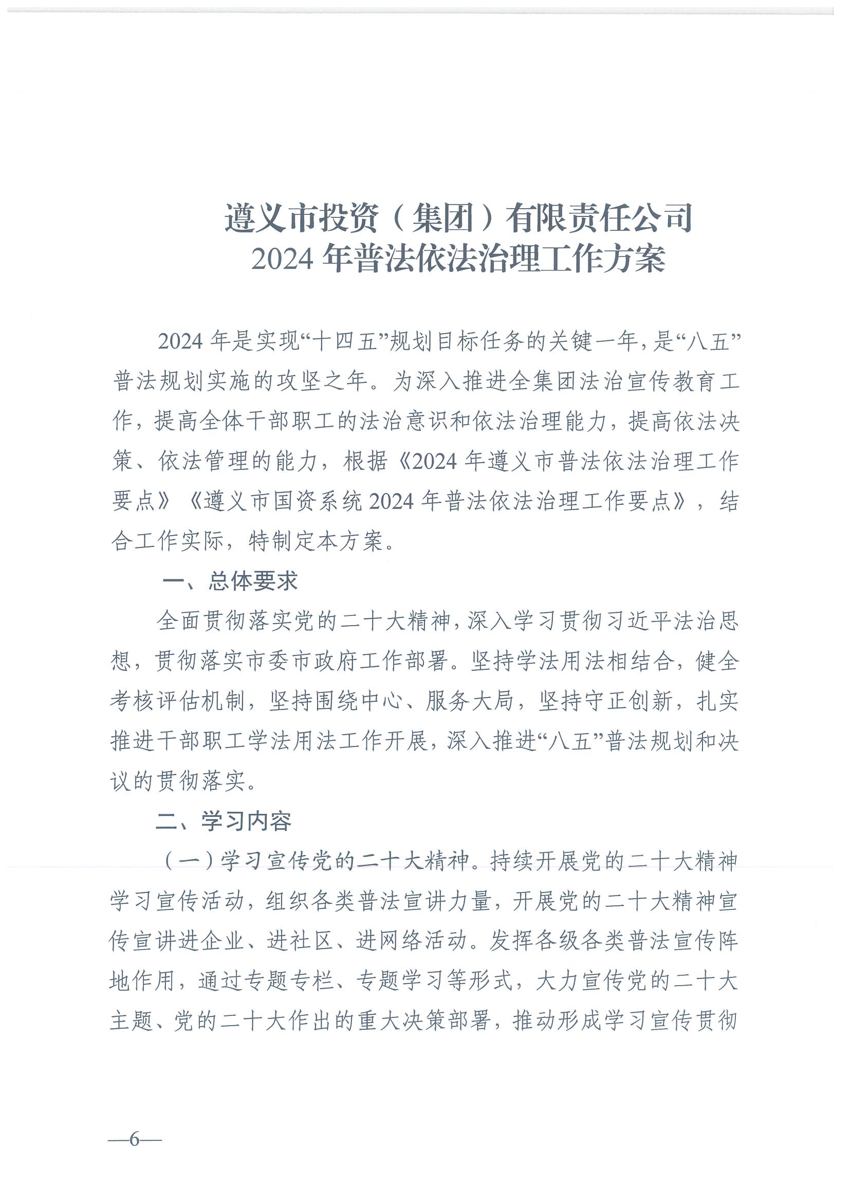 遵投發(fā)〔2024〕42號?關(guān)于印發(fā)《2024年度普法責任清單》《2024年普法依法治理工作方案》的通知